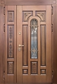 Полуторная входная термодверь МДФ с остеклением и защитной решеткой